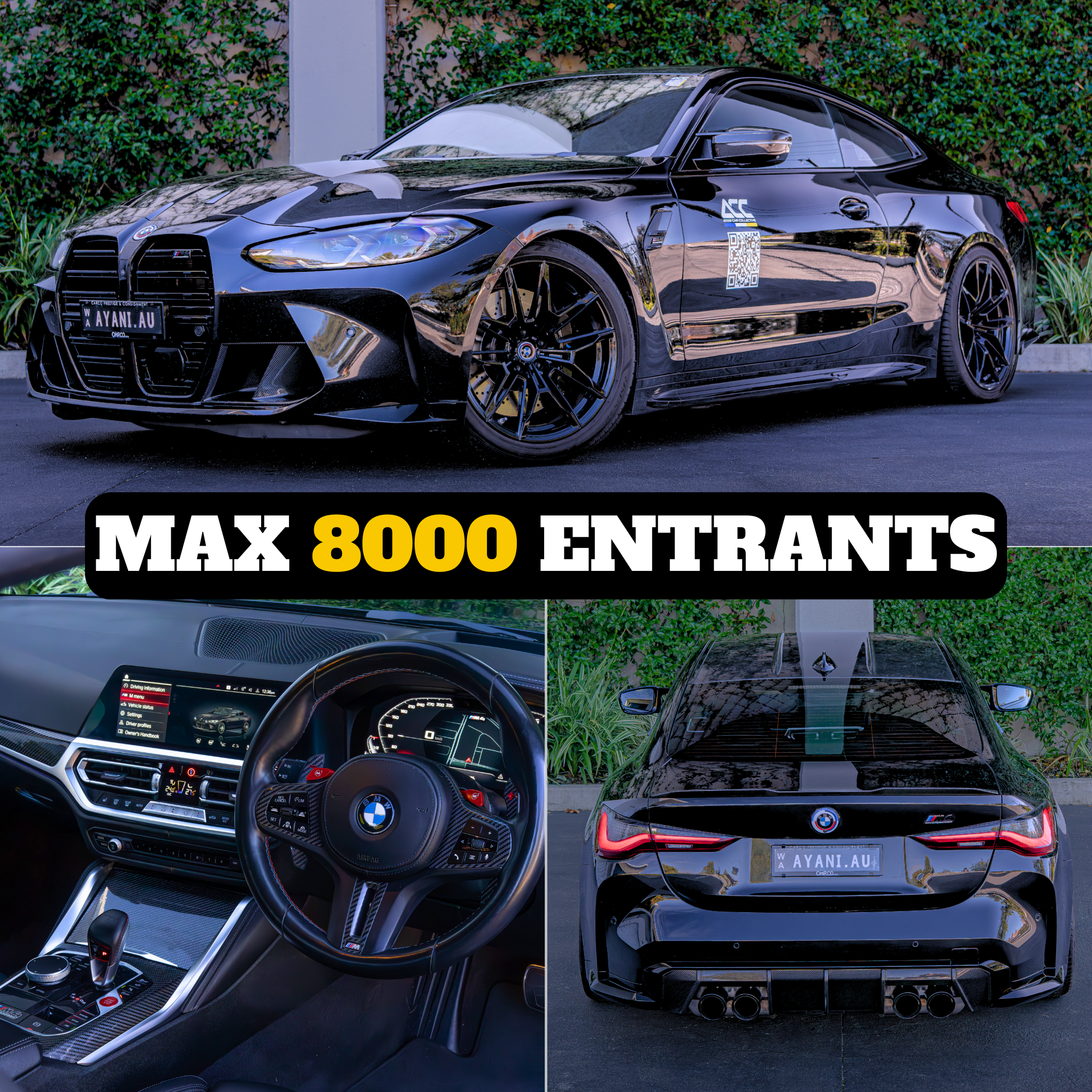 This M4 Competition is built to impress: legendary S58 3.0L twin-turbocharged inline-six — pushing out 503 HP, 650Nm, 0–100 km/h in just 3.9 seconds. It’s finished in full stealth spec — black paint, black wheels, black interior — and already lowered on KW adjustable springs. Before we give it away, we may add more touches, including a full custom wrap. The winner will have the car delivered straight to their door — or if you want to be sensible, we’ll transfer $100,000 in cash.